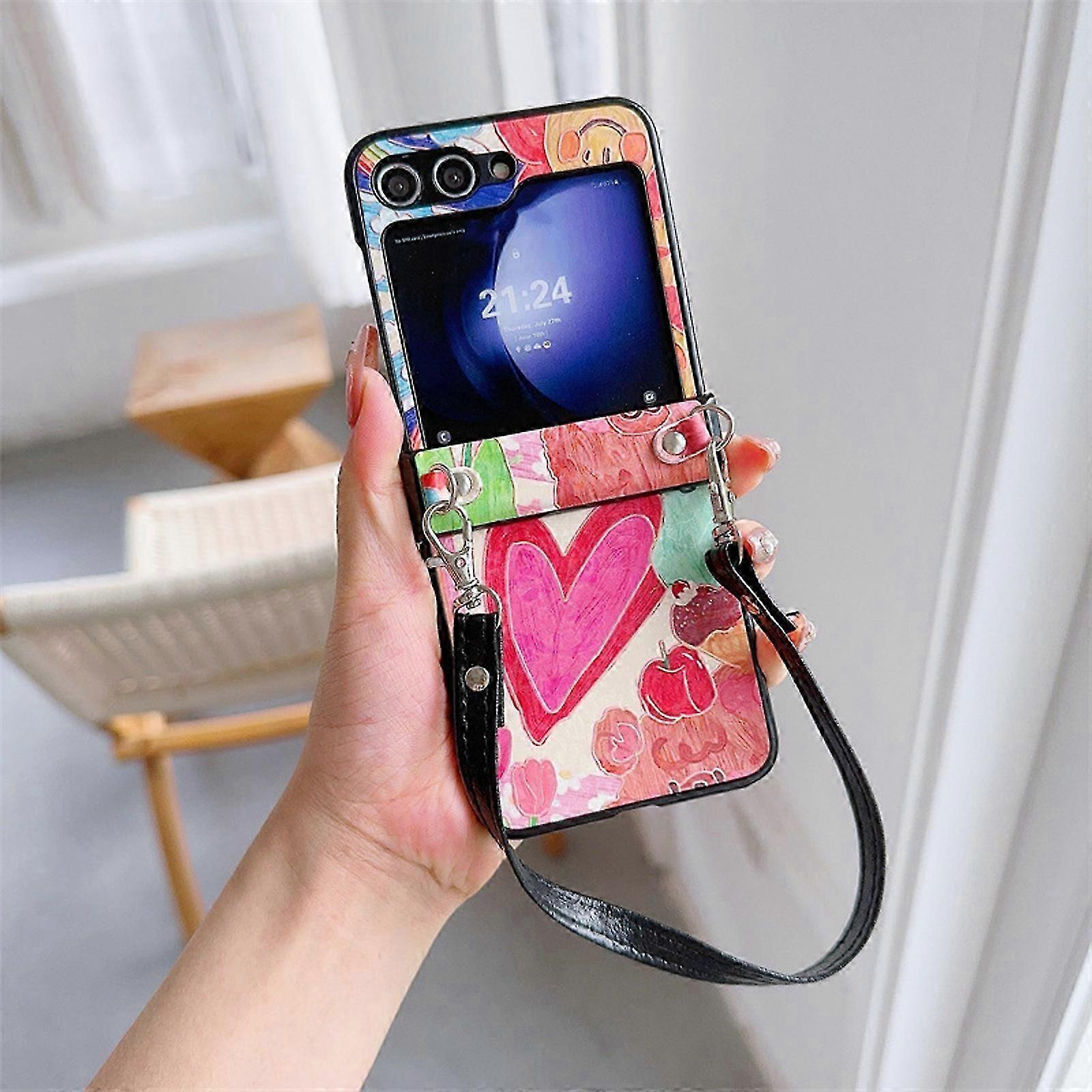 for Samsung Galaxy Z Flip 6 5G 2024 Case with Crossbody Wrist Strap Lanyard, Luxury PC Shockproof ZFlip6 Cover for Women Girl