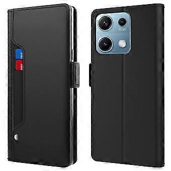 ل Xiaomi Redmi Note 14S 4G حالة حامل PU جلد غطاء الهاتف حامل بطاقة مرآة أسود