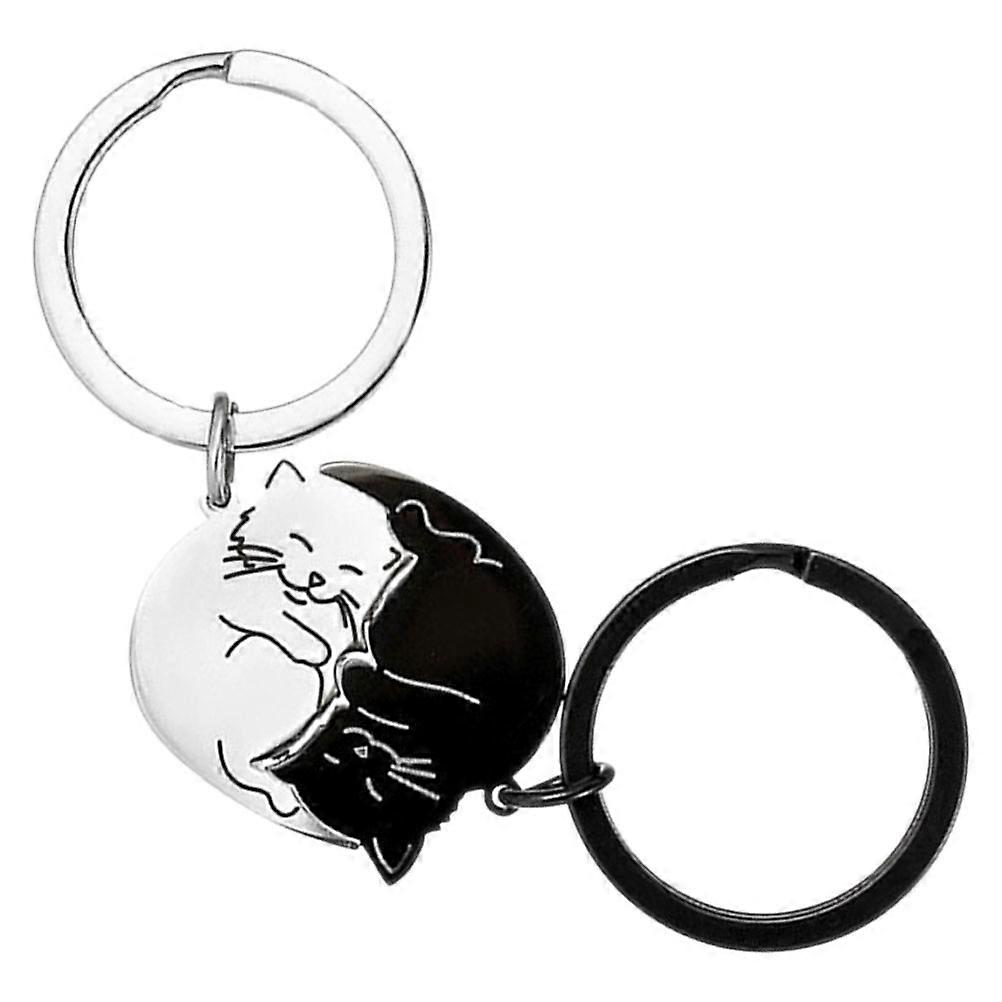 Cute Black and White Cat Keychain Pair Stylish Portable Bag Pendant with Creative Cartoon Design for Easy Attachment to Bags and Backpacks