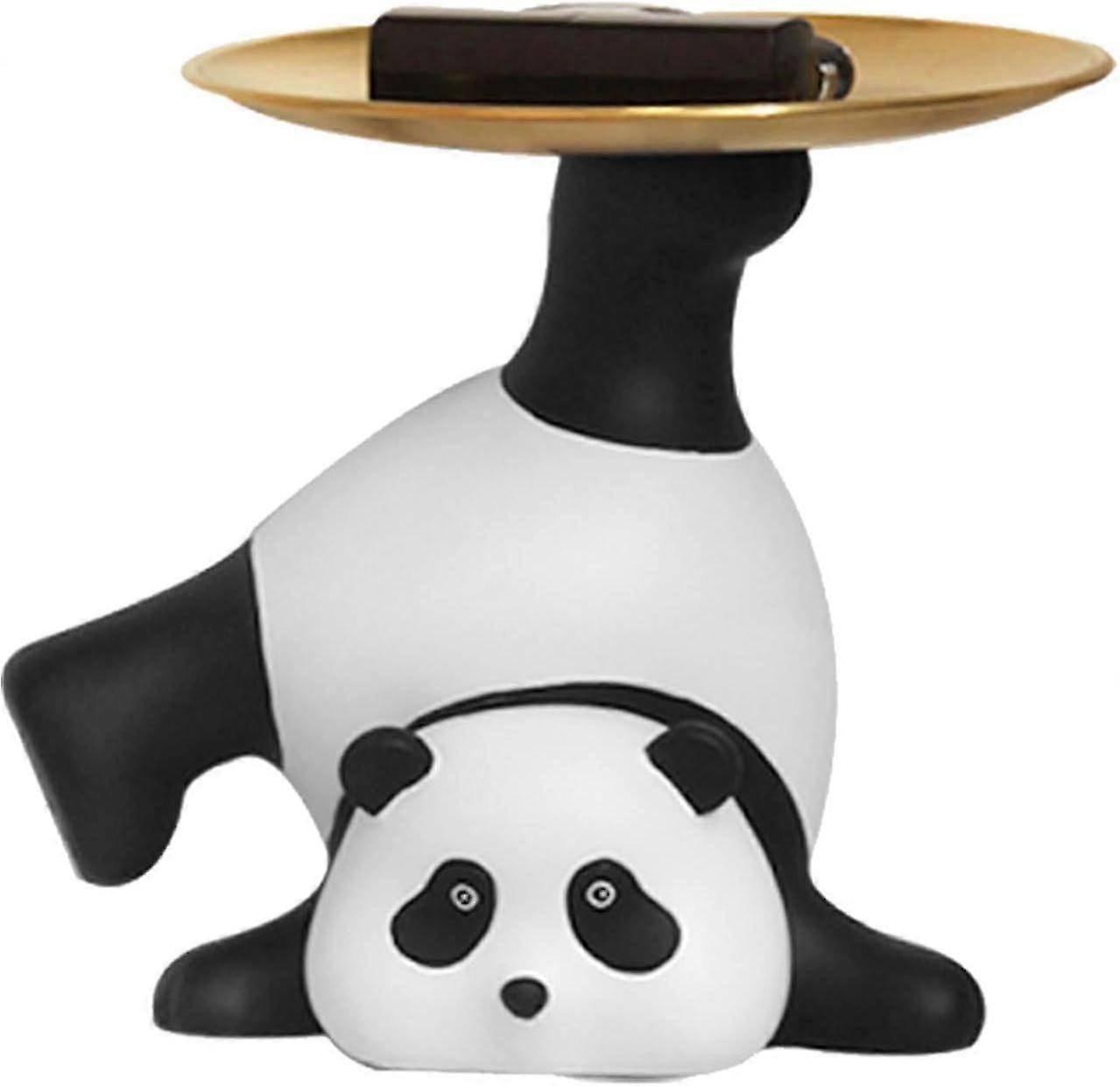 Cute Panda Statue Tray Panda Sculpture With Metal Tray Decorative Panda Figurine Animal Candy Bowl Trinkets Storage Tray For Home Decor Modern Art Din