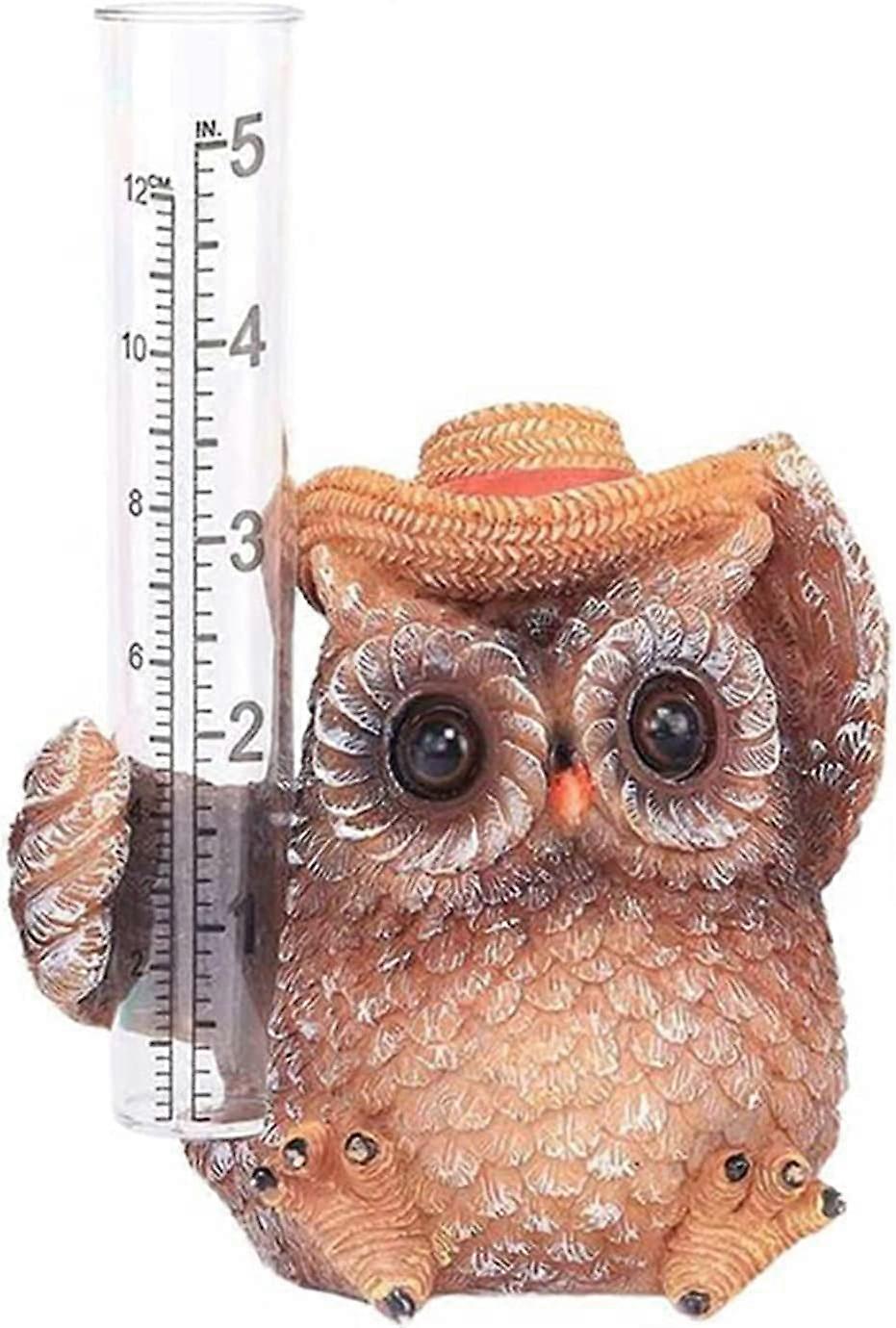 Cute Owl Rain Gauge Garden Statues Waterproof Durable Outdoor Resin Animals Statue for Garden