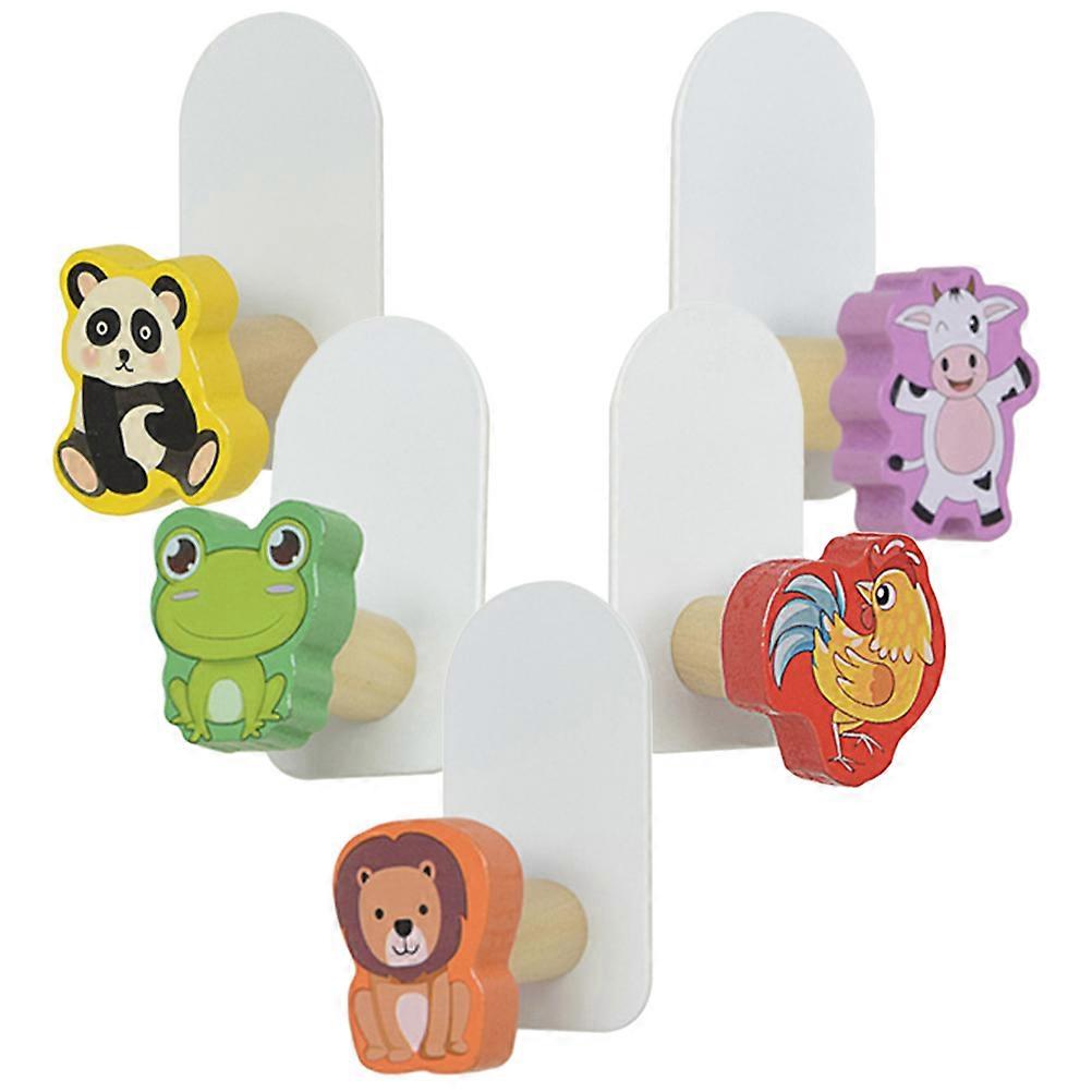 Cute Animal Wall Hooks Adhesive Wooden Hooks for Hanging Clothes, Keys, Towels – Frog, Panda, Lion, Rooster, Cow Designs – Decor for Bedroom,