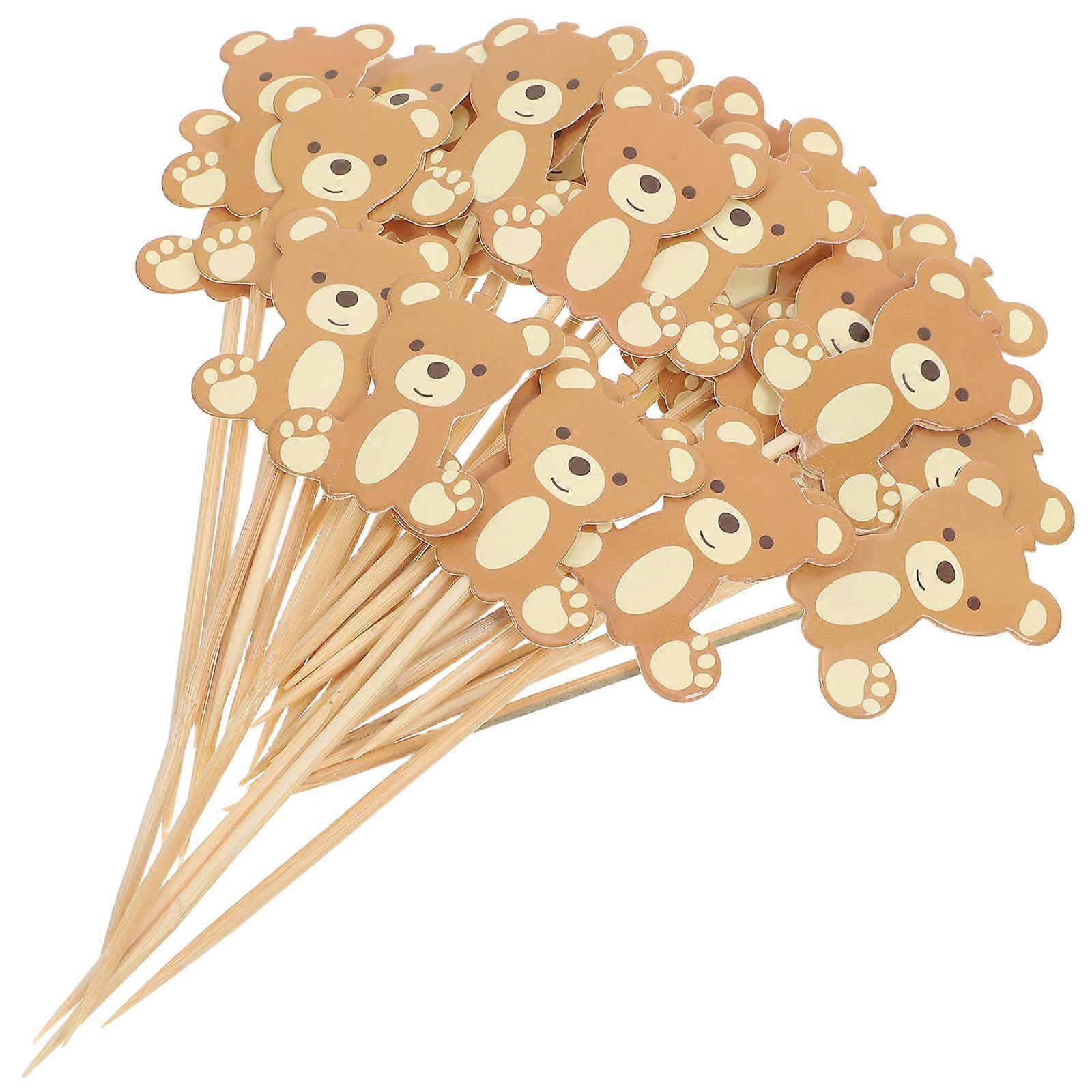 Cute Bear Cake Toppers For Children Adults Birthday Party Dessert Decoration Bamboo Material 50Pcs