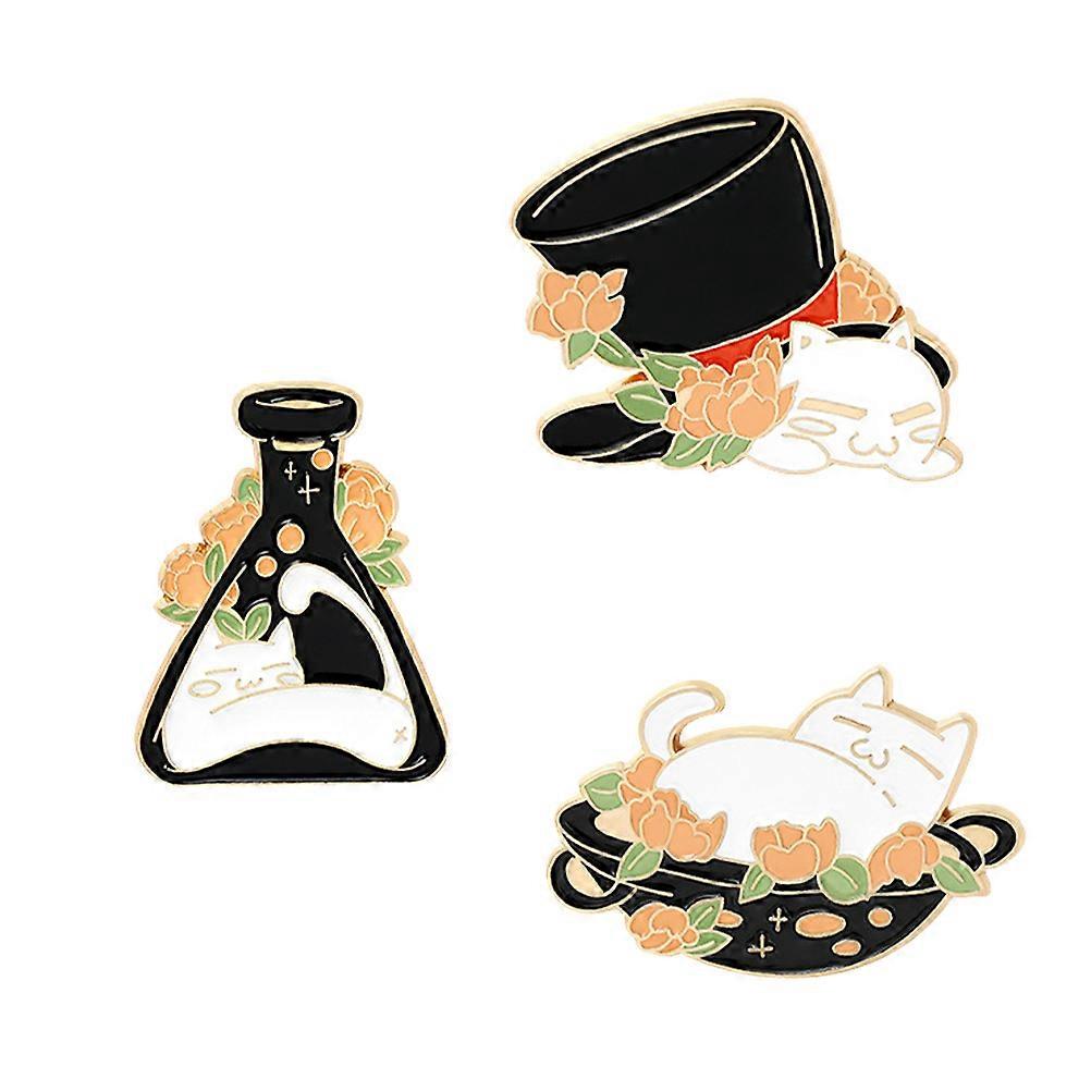 Cute Cat Brooches Cartoon Alloy Brooch Accessories Gift Giving Everyday Wear Assorted Color Decorative 3Pcs
