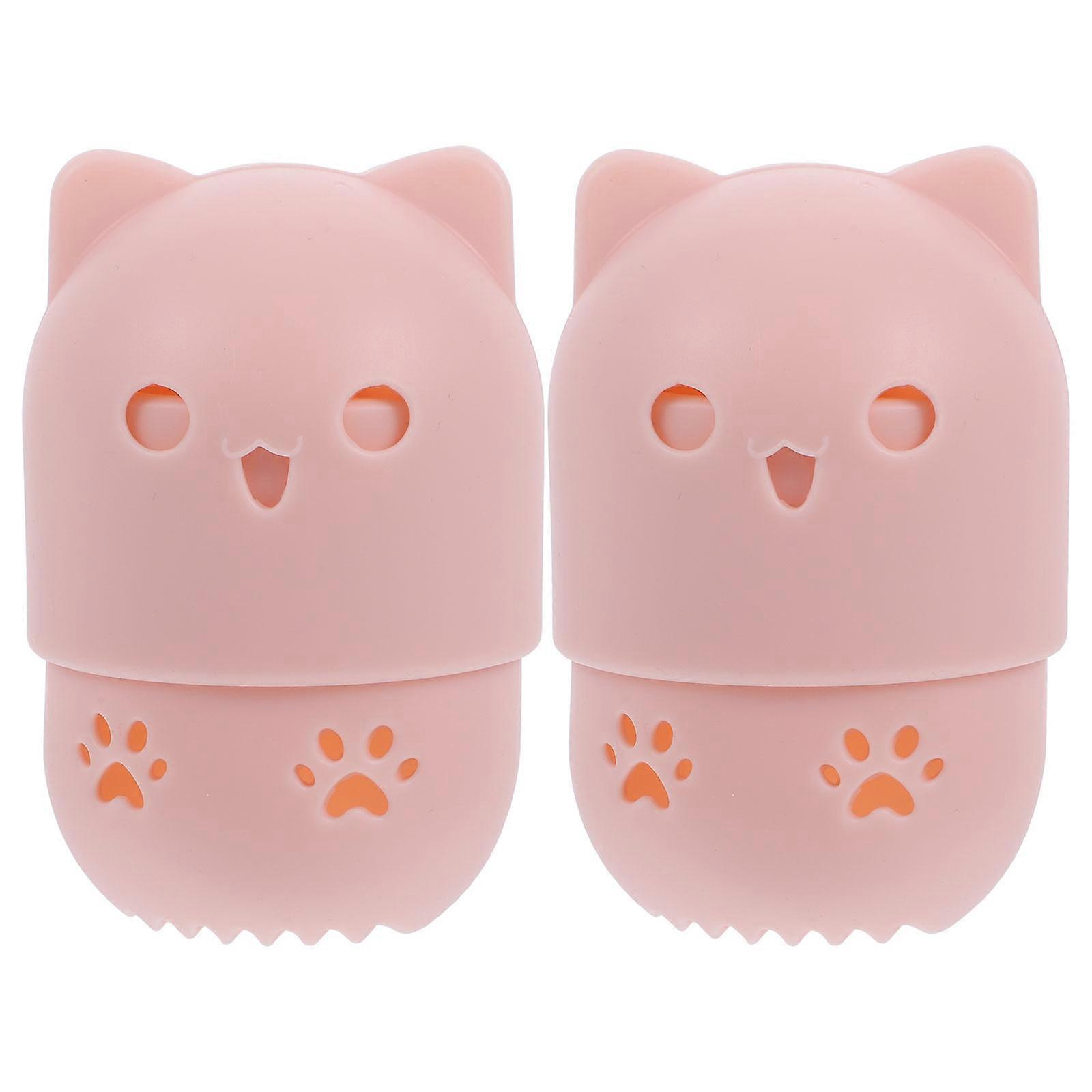 Cute Cat Shape Makeup Puff Case 2Pcs For Girls Bedroom Decor 8X5Cm Flexible Pink Storing Tools