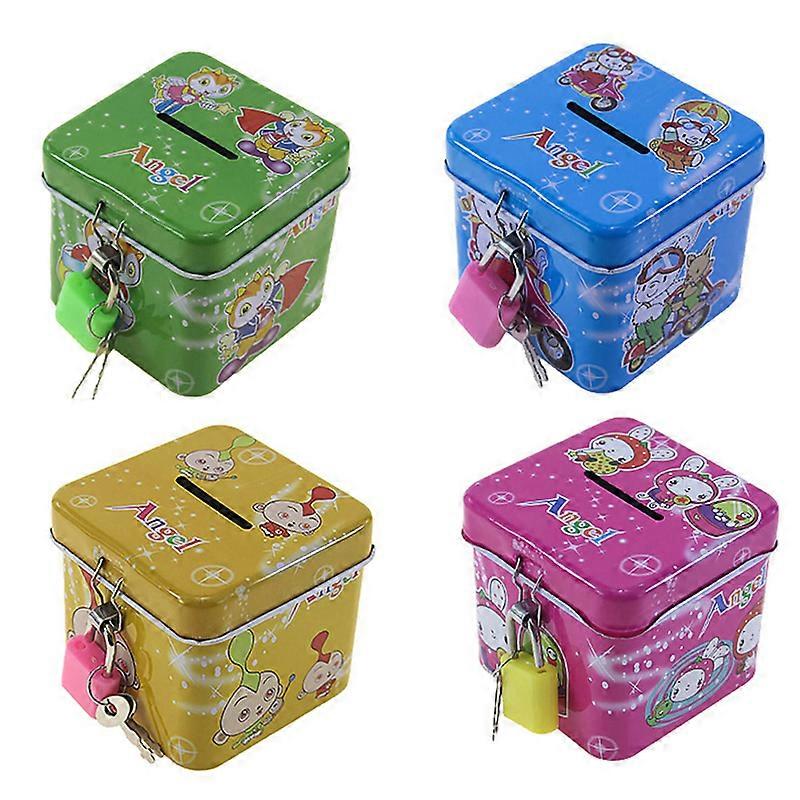 Cute Cartoon Square Tin Metal Piggy Bank Saving Cash Coin Money Box Children Toy Kids Birthday Gifts 4 Color With Lock/Key