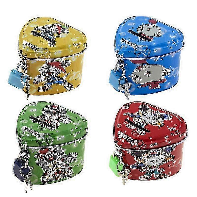 Cute Cartoon Square Tin Metal Piggy Bank Saving Cash Coin Money Box Children Toy Kids Birthday Gifts 4 Color With Lock/Key