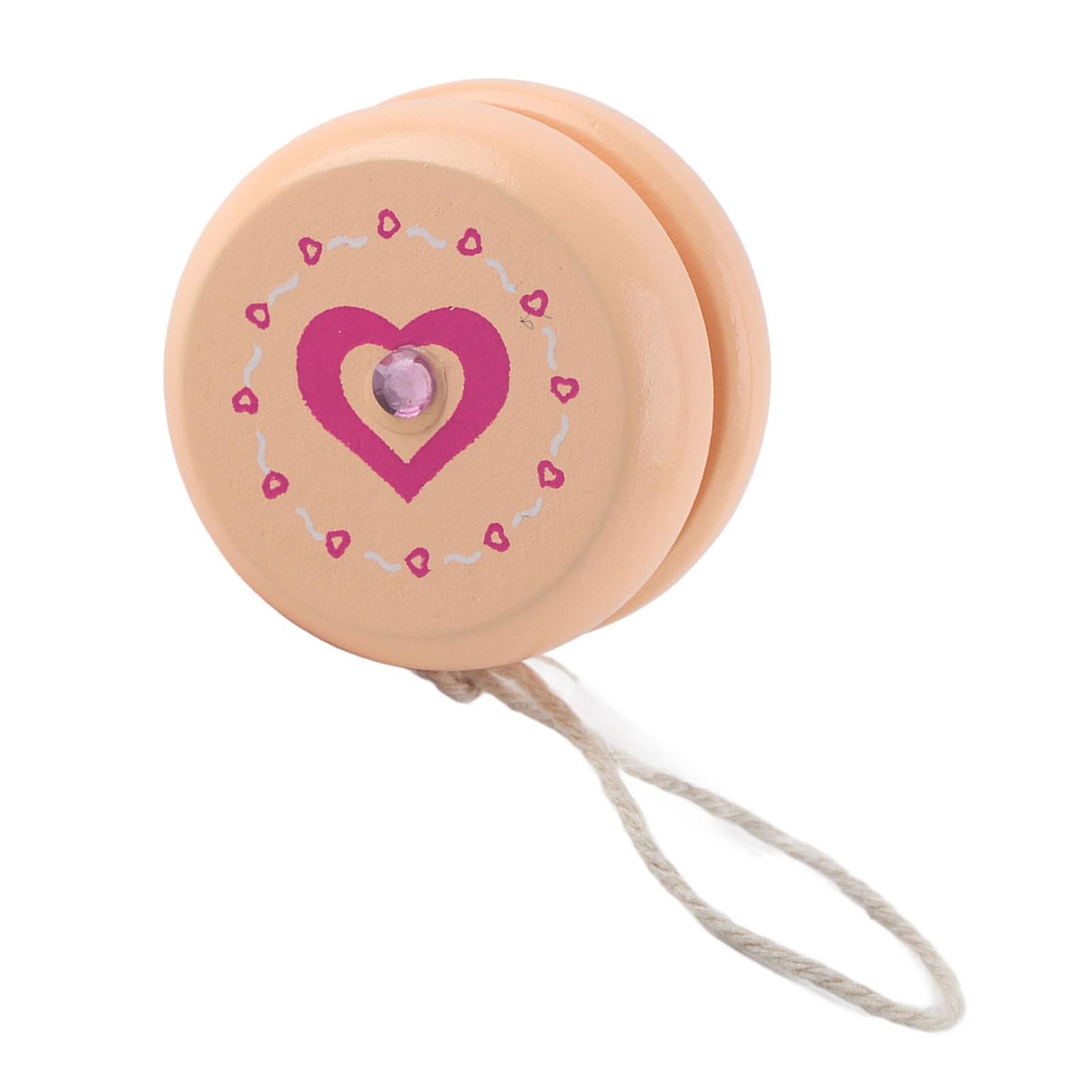 Cute Cartoon Pattern Wooden Yoyo Ball Toy Early Education Toy for Kid (Pink Heart)