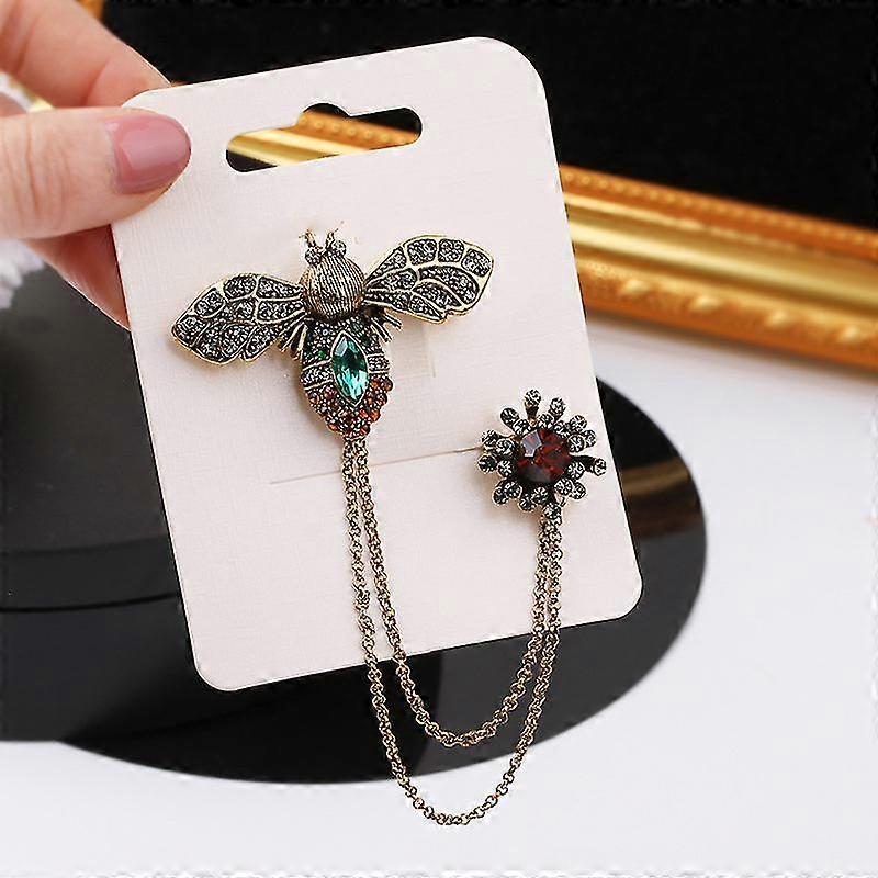 Cute Bees Brooch Chain Double Pin Buckle Retro Cardigan Accessories Gift For Girls