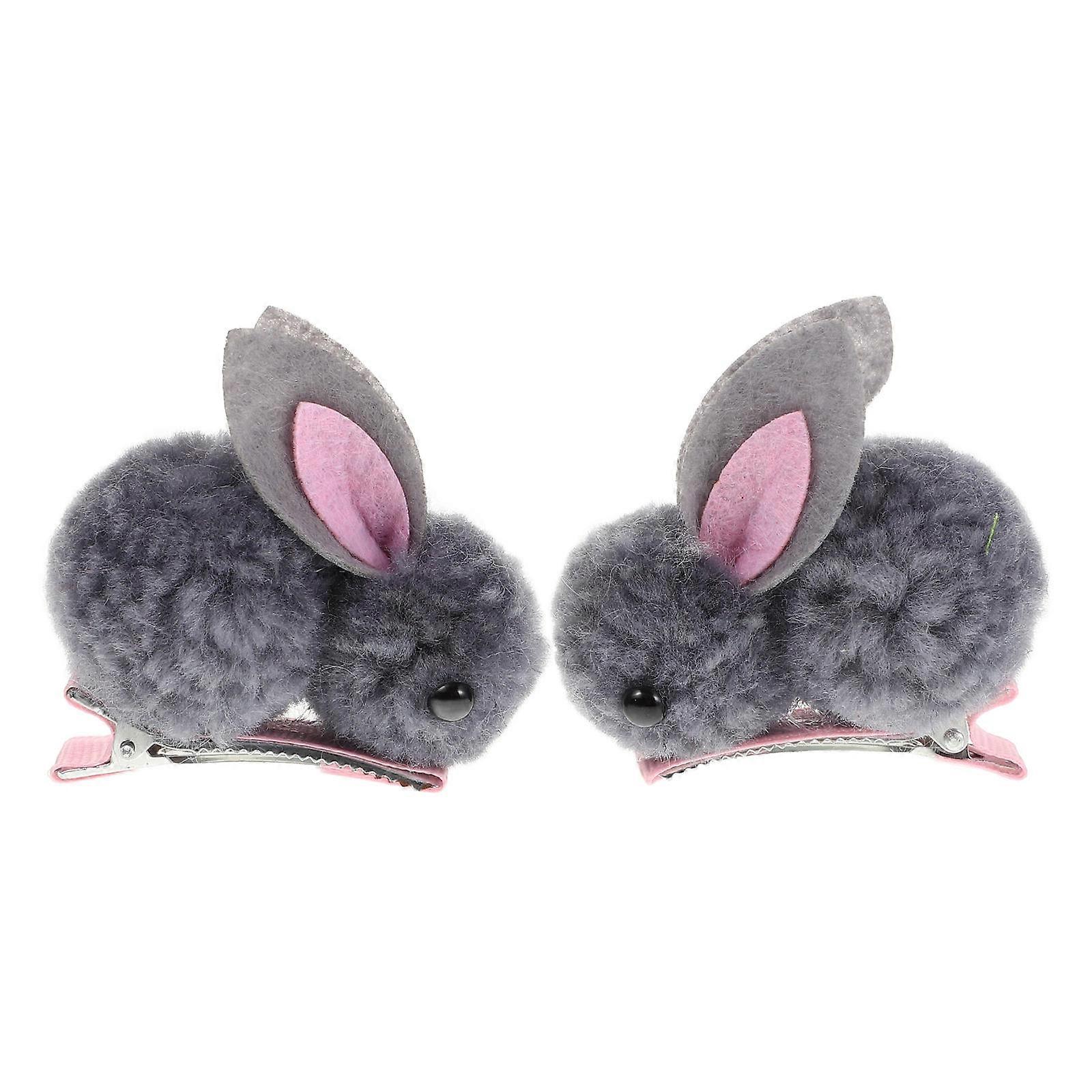 Cute Plush Bunny Hairpins For Girls 3D Rabbit Hair Accessories Nonslip Grip Light Grey 6.00X6.00X2.00CM 1Pair