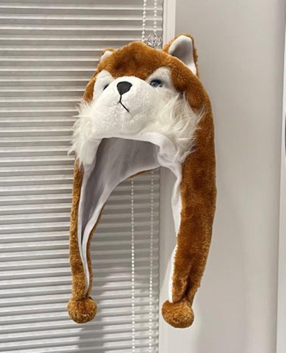Cute Plush Animal Character Winter Hat Fun Ski Cap With Detailed Animal Face Long Ear Straps With Pom Pom Ends
