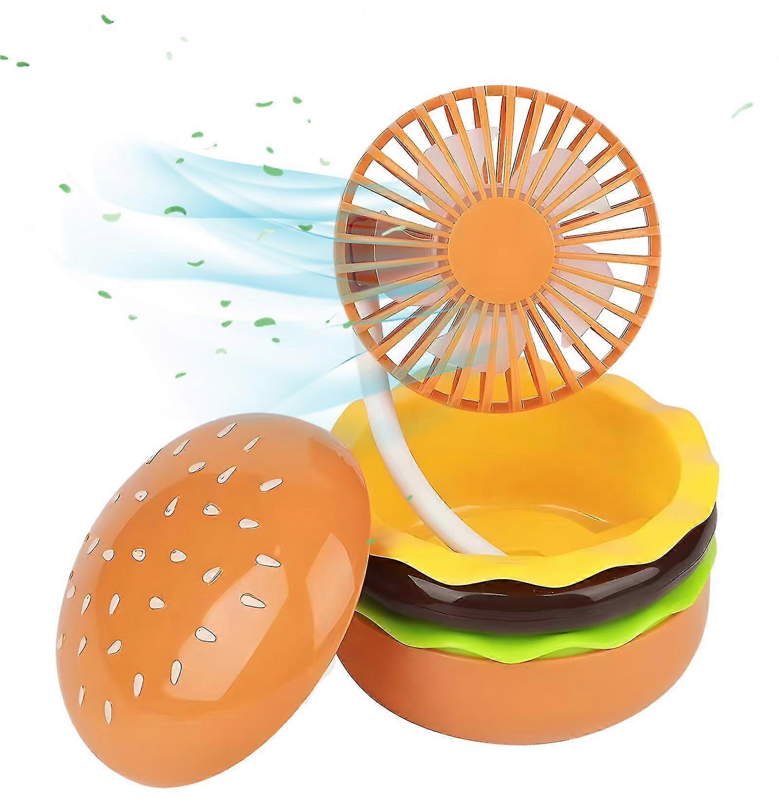 Cute Burger Fan Rechargeable Burger Desktop Fan Adjustable Neck Fan with Beauty Mirror Kawaii Desk Accessories Decoration -GSLA