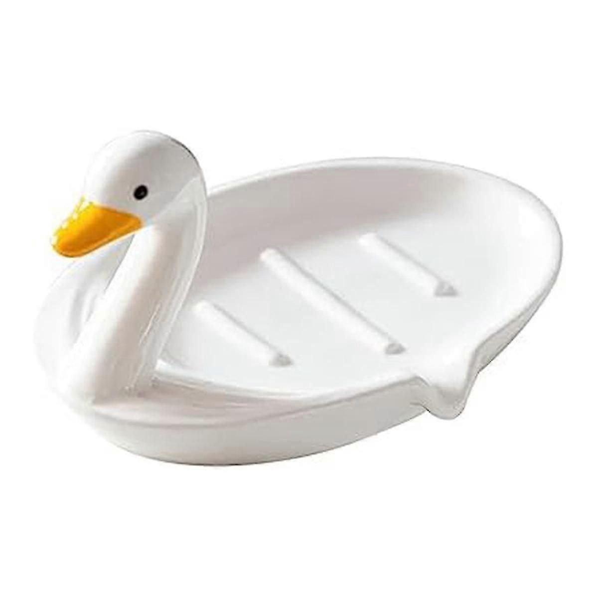 Cute Animal Duck Ceramic Soap Dish Self Draining Soap Holder With Drain For Shower Bathroom Kitchen
