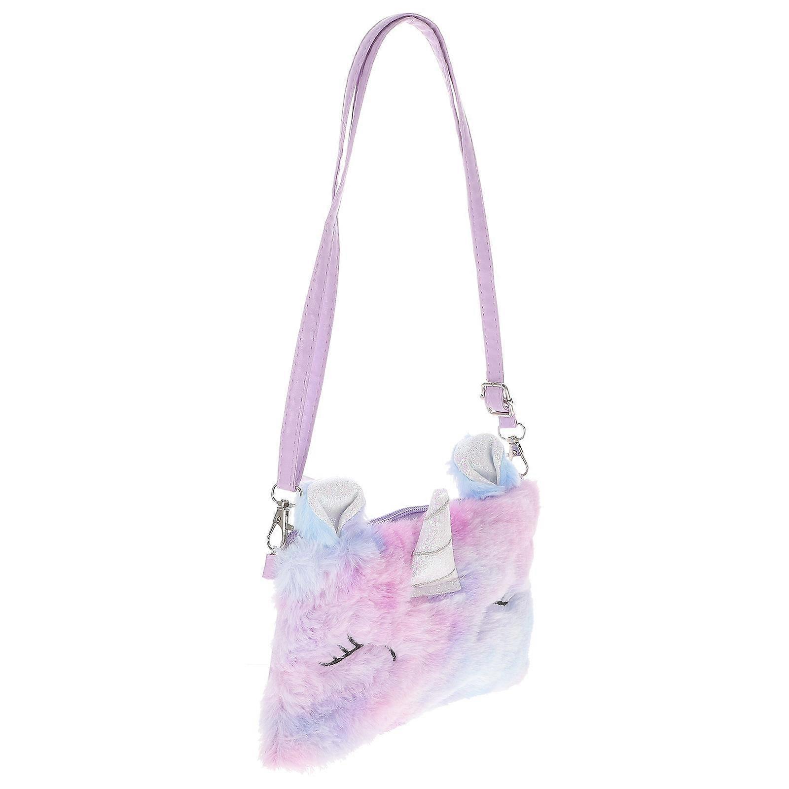 Cute Crossbody Bag Unicorn Design Shoulder Pouch Plush Girls Purse Outdoor Use Purple 1Pcs