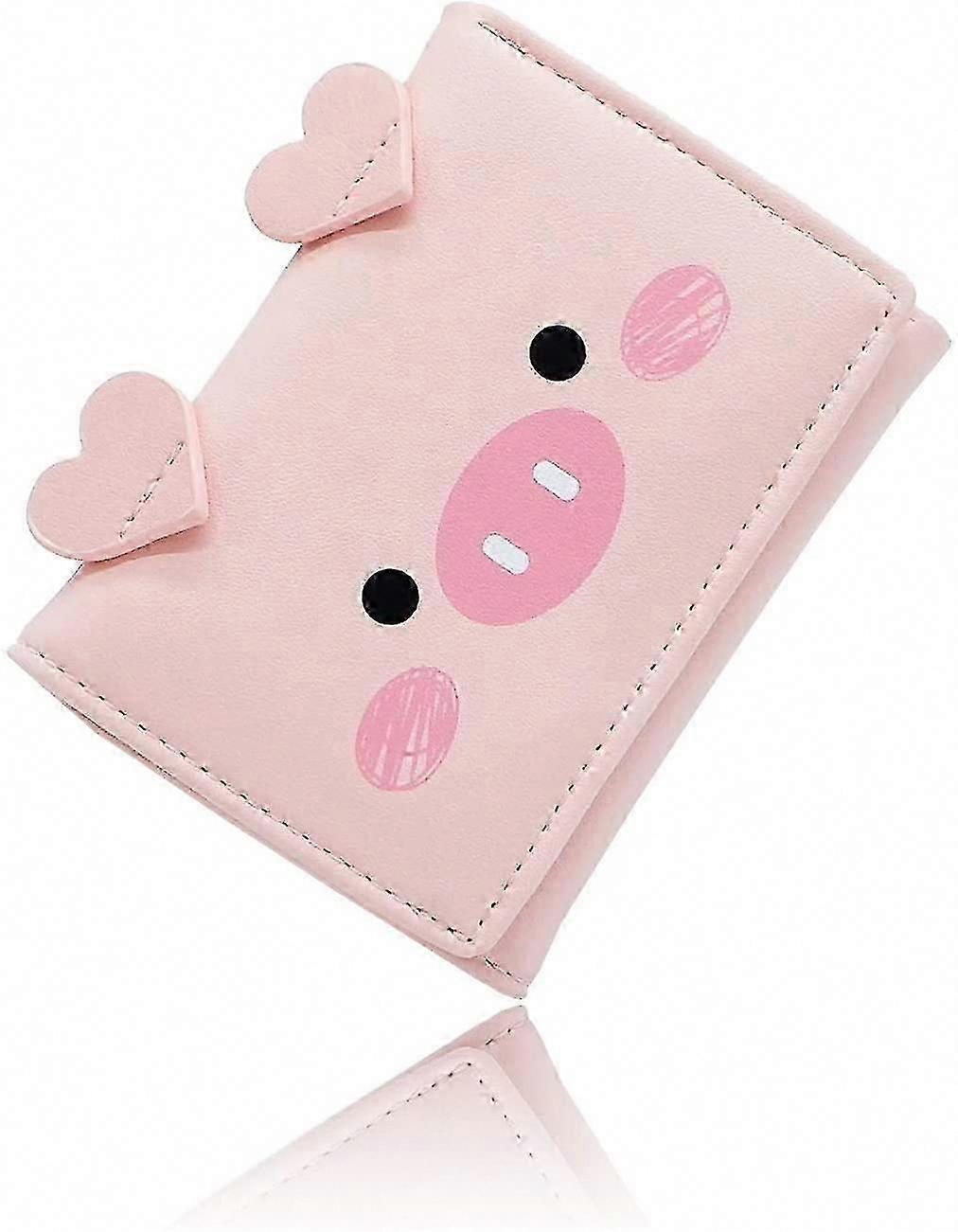 Cute Pig Pattern Leather Tri-Fold Wallet for Women & Girls - Slim Purse (Pink)