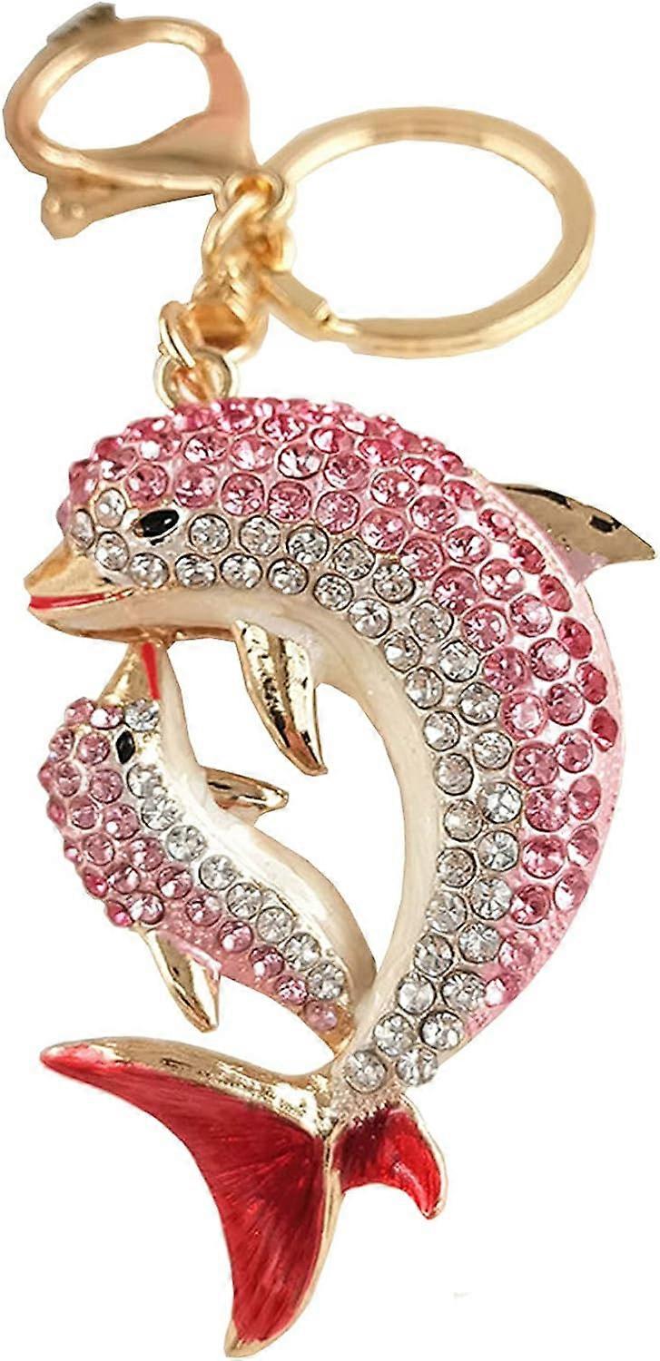 Cute Dolphin Rhinestone Keyring, Ocean Charm Animal Pendant (Pink)