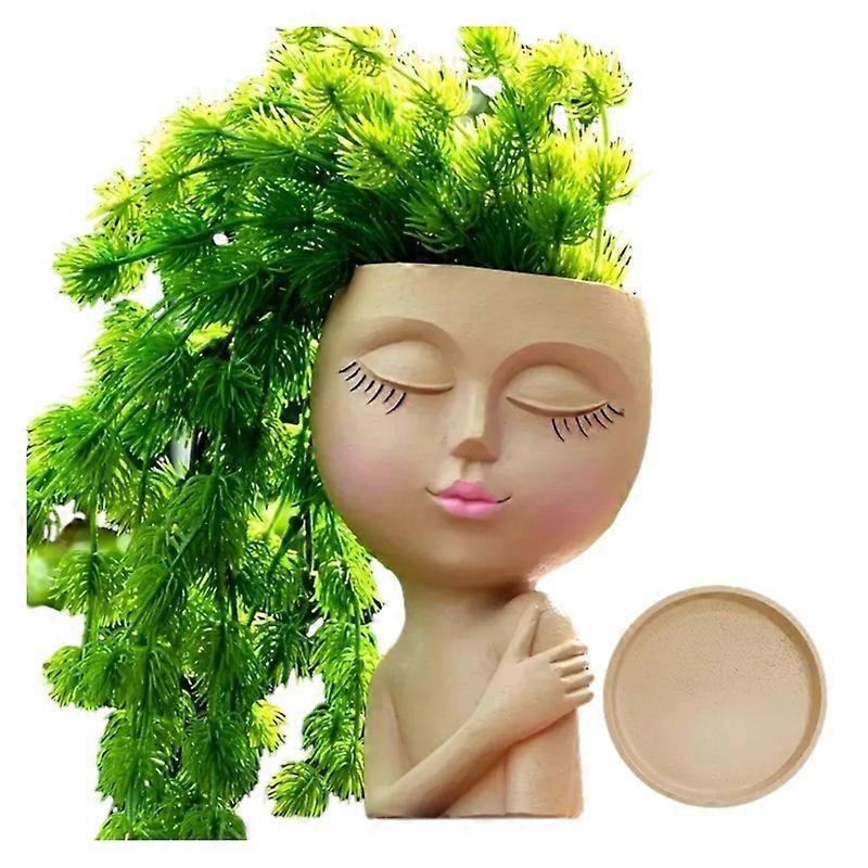 Cute Girl Sculpture Planter Potted Plant for Office Small Plant Garden Ornament
