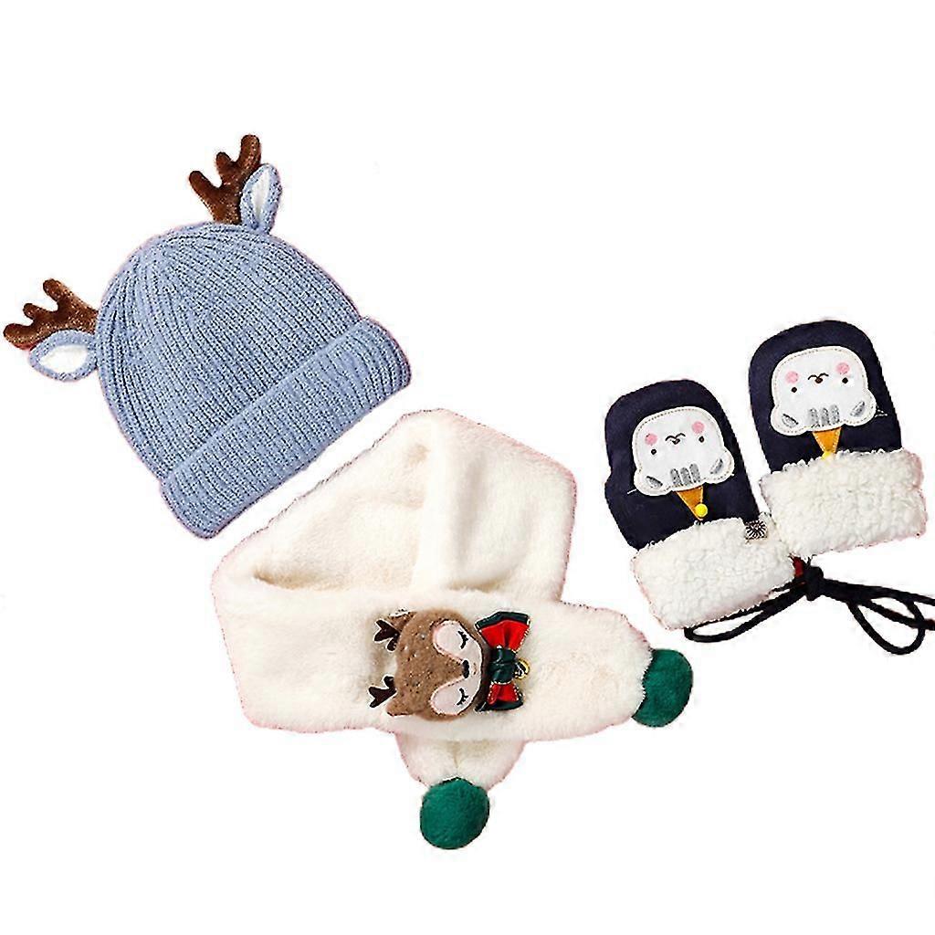Cute Antler Wool Feel Hat Cartoon Gloves Plush Bib Christmas Gift For Kids