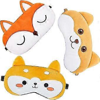 Cute Eye Mask 3Pcs Cartoon Face Eye Cover Funny Animal Sleeping Mask Soft Lightweight Blindfolds Yellow&Orange/fox bear chick 19*10 cm/7.48*3.94 inch