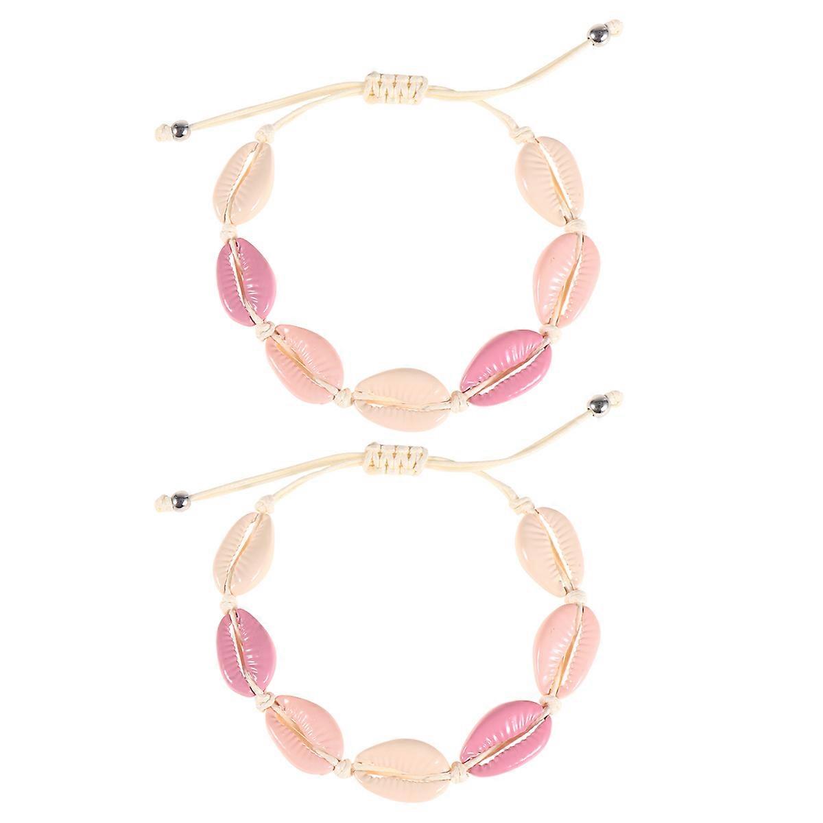 Cute Jewelry Beach Bracelet Girls Daily Wear Multi-Colored Shell Round Hawaii Sea Style 2Set