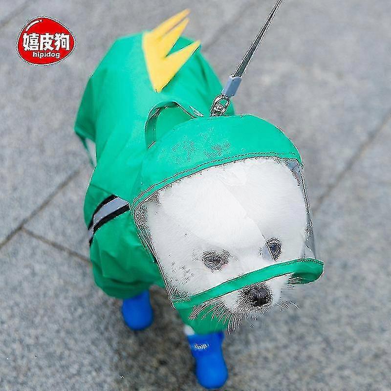 Cute Dog Raincoat, Rainproof Entrainment Hat, Transparent Brim, Reflective Night Light Strip, Double Waterproof Raincoat