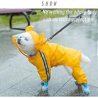 Cute Dog Raincoat, Rainproof Entrainment Hat, Transparent Brim, Reflective Night Light Strip, Double Waterproof Raincoat