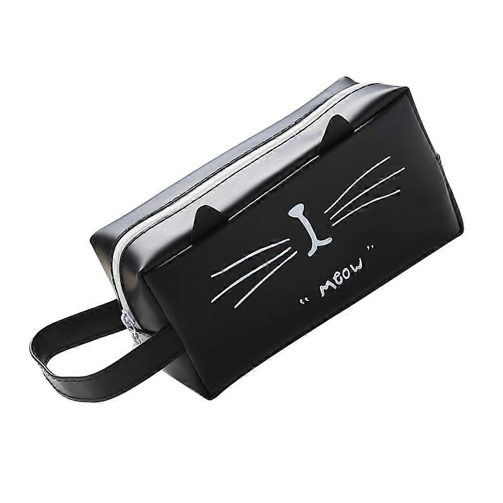 Cute Pencil Case Pattern Small Pen Bag Jelly Gel Storage Bag Stationery for Girl Kid Child Black Cat Rectangular 1Set