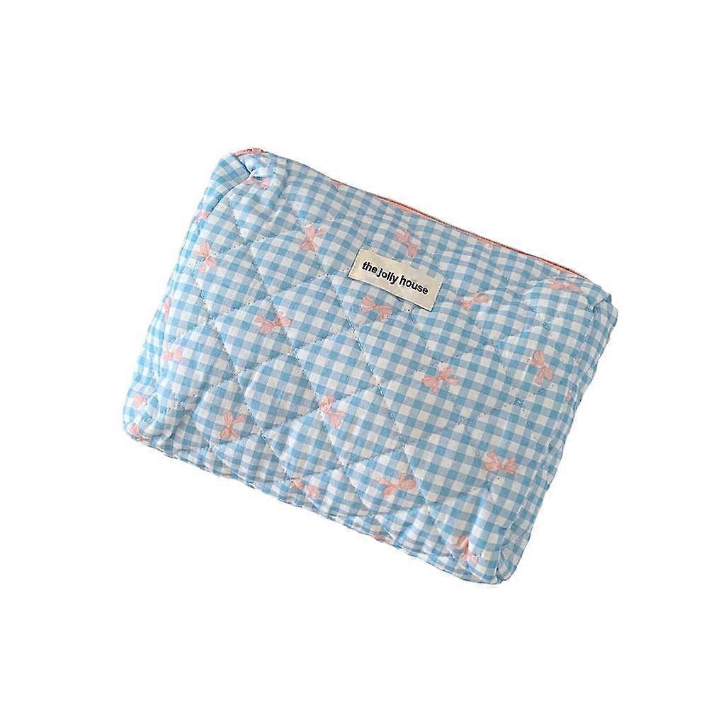 Cute Plaid Bow Storage Bag Soft Makeup Bag Plaid Pencil Case Children