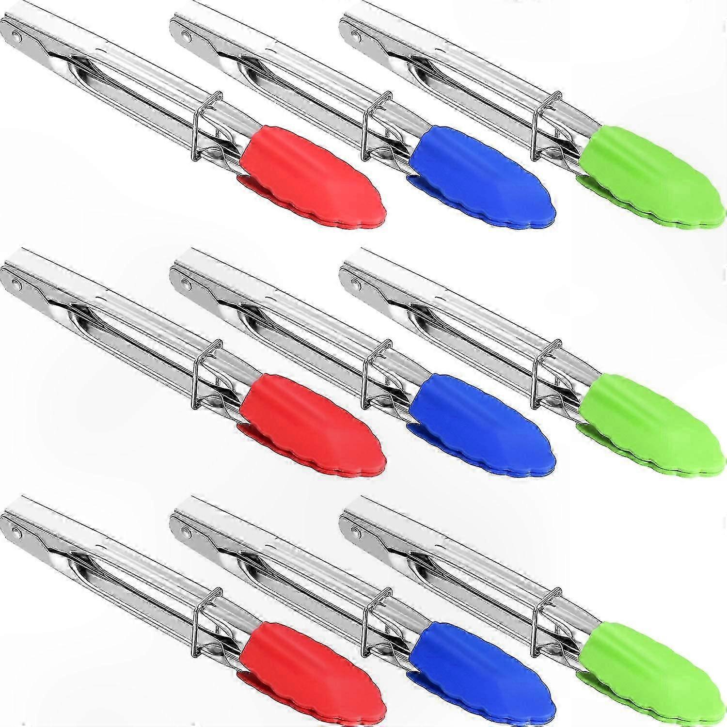 For 2024 9 Pieces Mini Serving Tongs - 7 Inch Small Silicone Tongs Metal Food Tongs For Salad Baking (Red, Green), Cooking Utensils