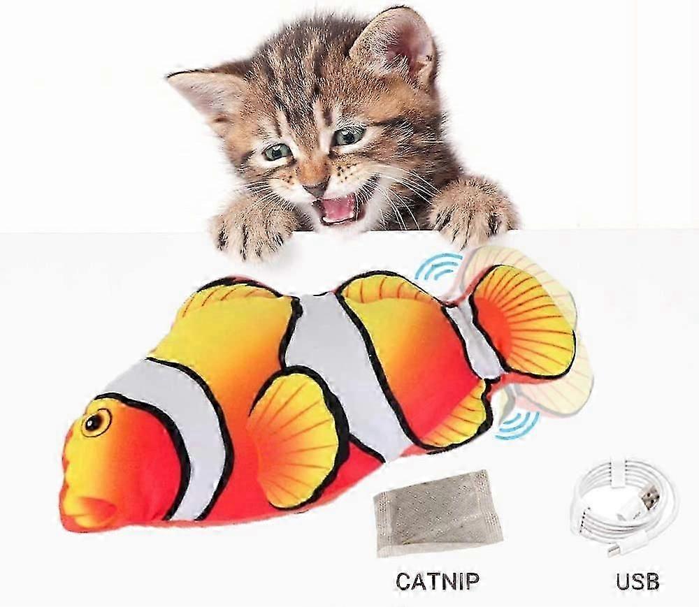Flopping Fish Cat Toy, 11'' Moving Cat Kicker Fish Toy with Sensor for Cat/ Kitten Biting, Chewing and Kicking -Interactive Realistic Plush Simulation