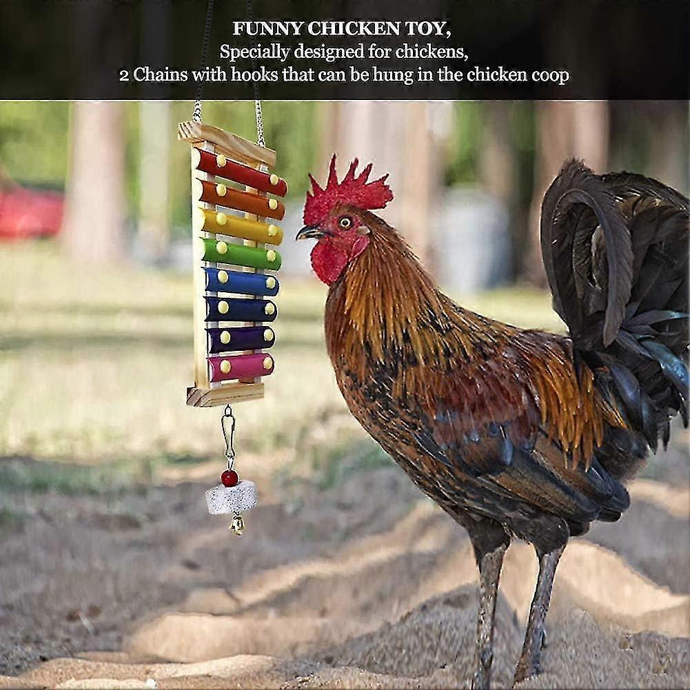 Chicken Xylophone Toy Wood Hen Toy Musical Chicken Bird Peck Toy With 8 Metal Keys And Grinding Stone For Chicken Coop Cages