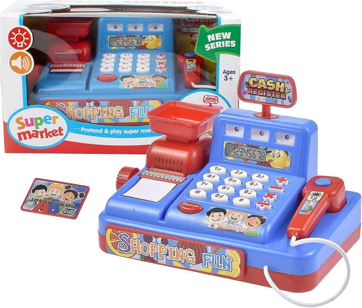 Toy Cash Register,Cash Register Pretend Play Toy,Fun Supermarket Shop Toys,Classic Count Toy With Sound, Working Scanner, Pretend Credit Card, Play Fo