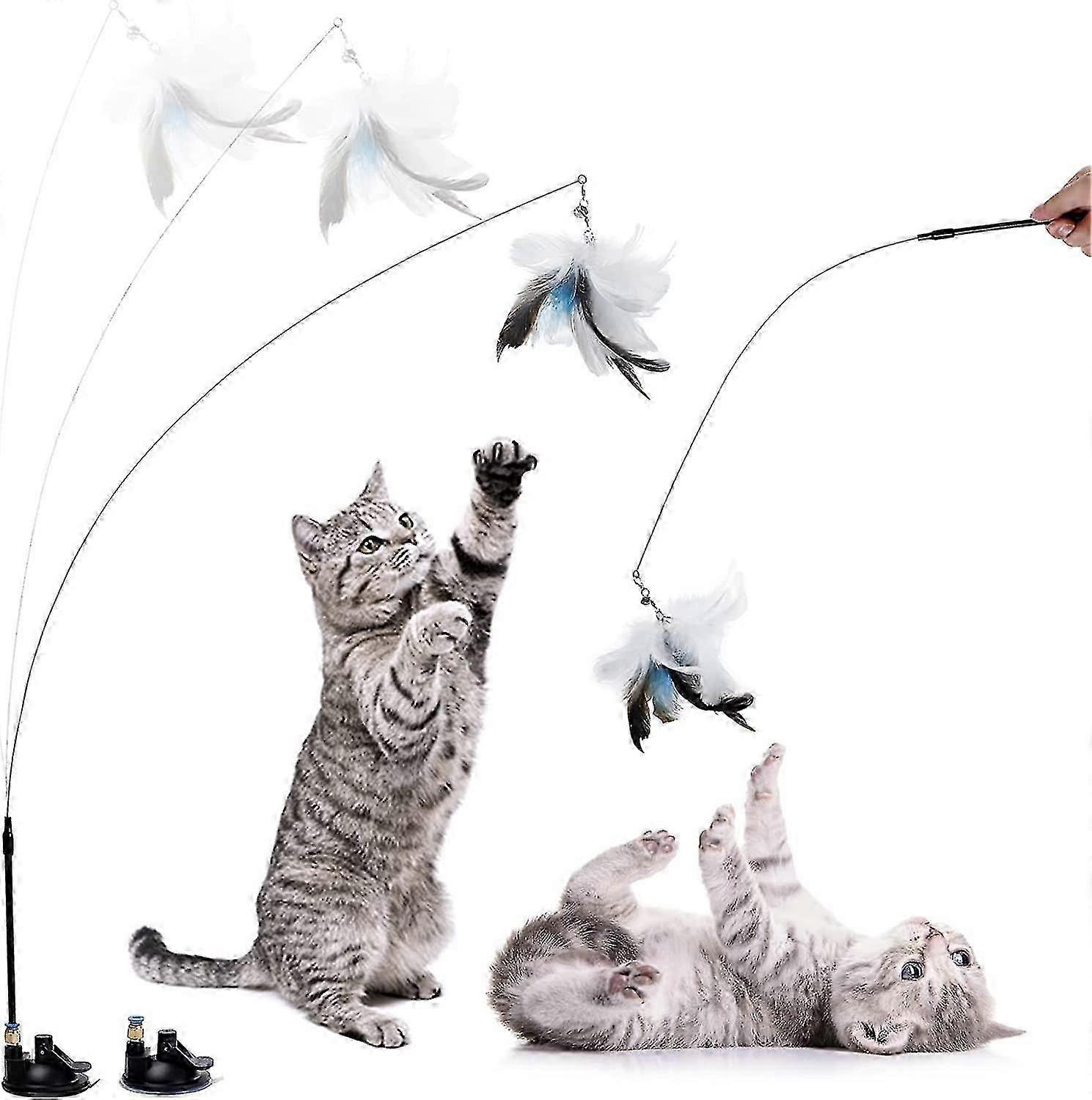 Interactive Cat Fishing Toy with Feather - Cat Intelligence Toy Spring Toy with Suction Cup for Kitten Independent Work Cat Wand Cat Wand with Feathe