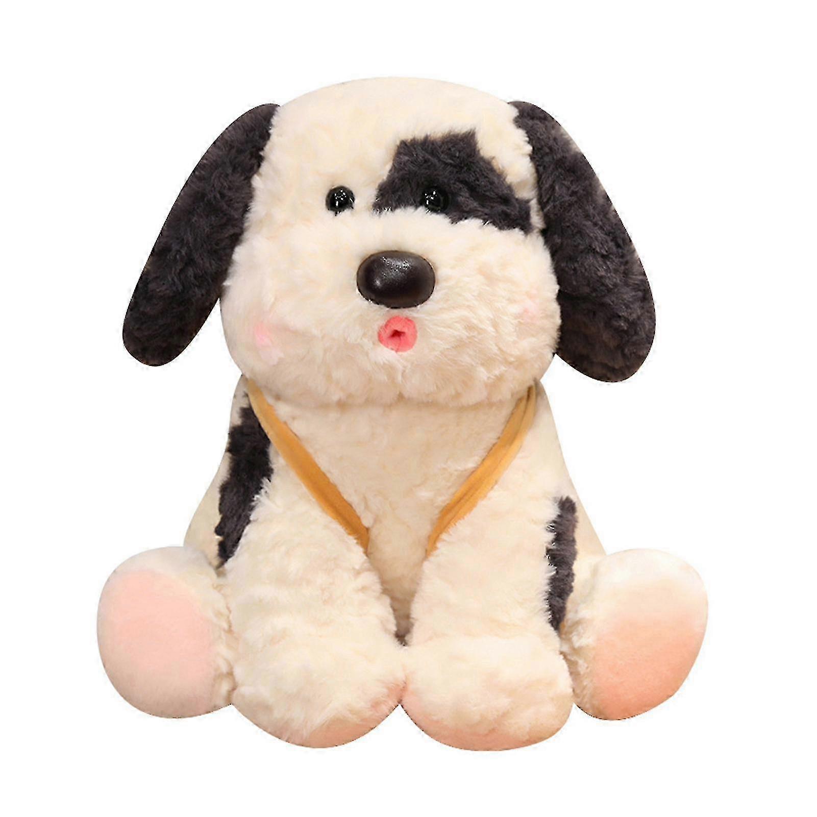 Dog Plush Toy with Chicken Leg Bag Stuffed Spotted Puppy Animal Doll Home Office Bedroom Decoration Kids Adults Christmas Birthday Gift