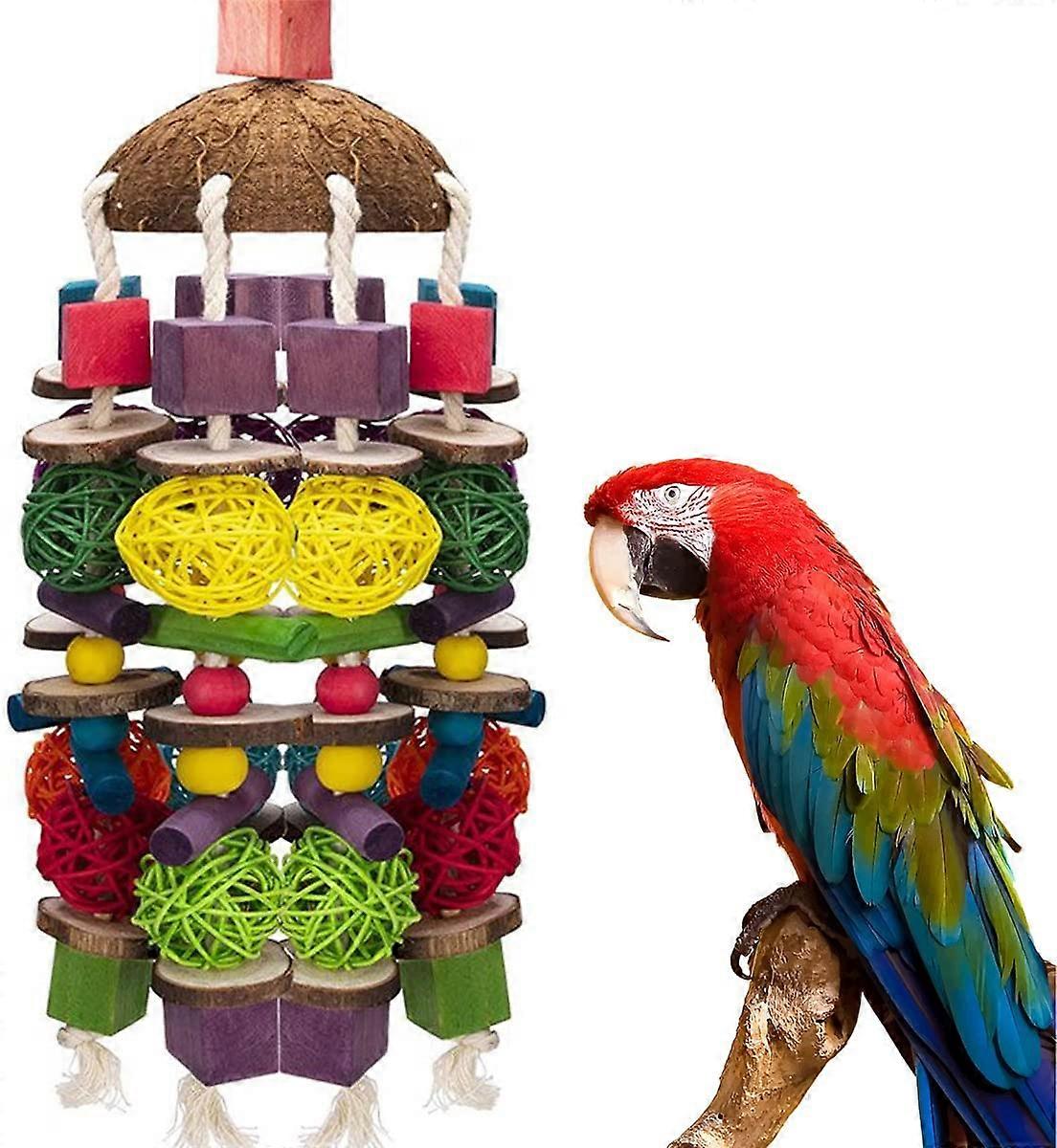 Large Bird Parrot Chewing Toy Strong Upgraded,Parakeet Cage Bite Toys Hanging Chewing Multicolored Natural Wooden Blocks Bird Chewing Toy