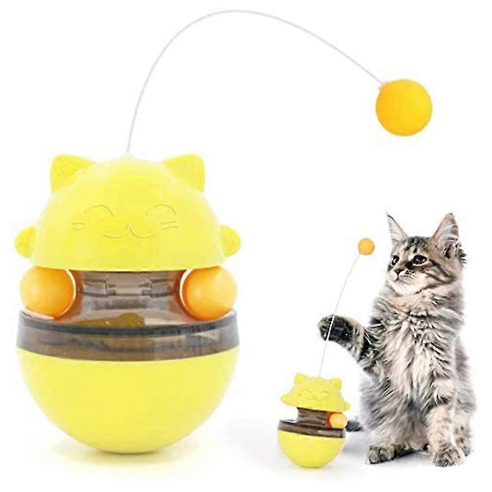 Cat Slow Feeder Toy - Funny Tumbler Style, Iq Traning Interactive Treat Toy With Dual Rolling Balls And Detachable Wand