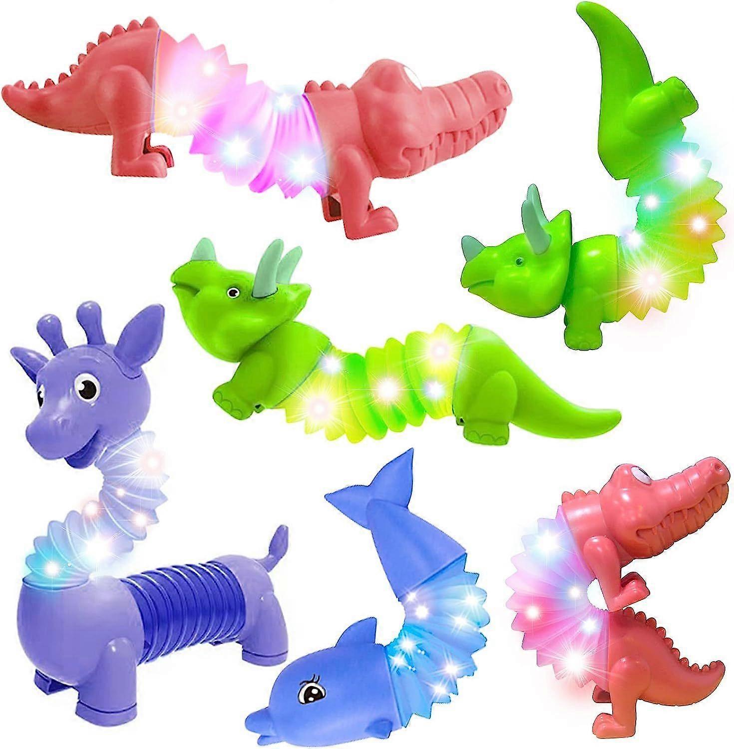 Pop Tubes Toy, Sensory Tube Toy for Children with LED Light, 6 Packs Animal Pop Tube, Glow Party Favours, Stress Relief Toy for Autism Children
