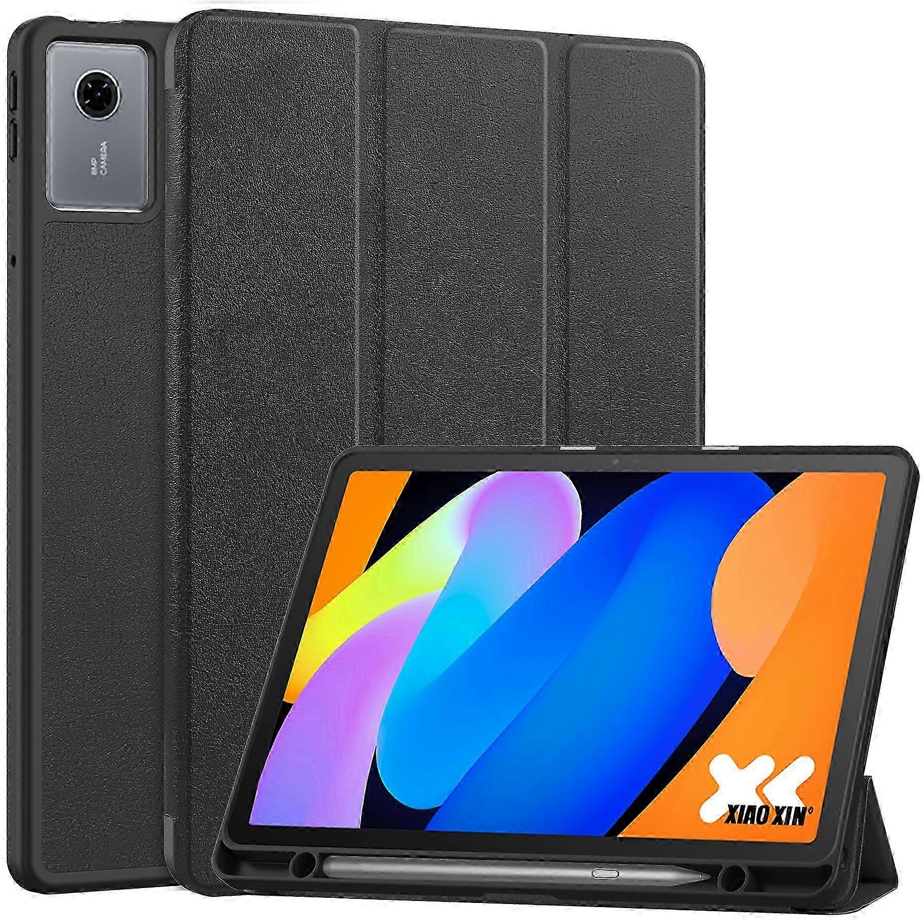 For Lenovo Idea Tab (TB336ZU TB336FU) Xiaoxin Pad 11 2025 Stand Case Shock-Absorbent Leather Tablet Cover with Pen Slot Black