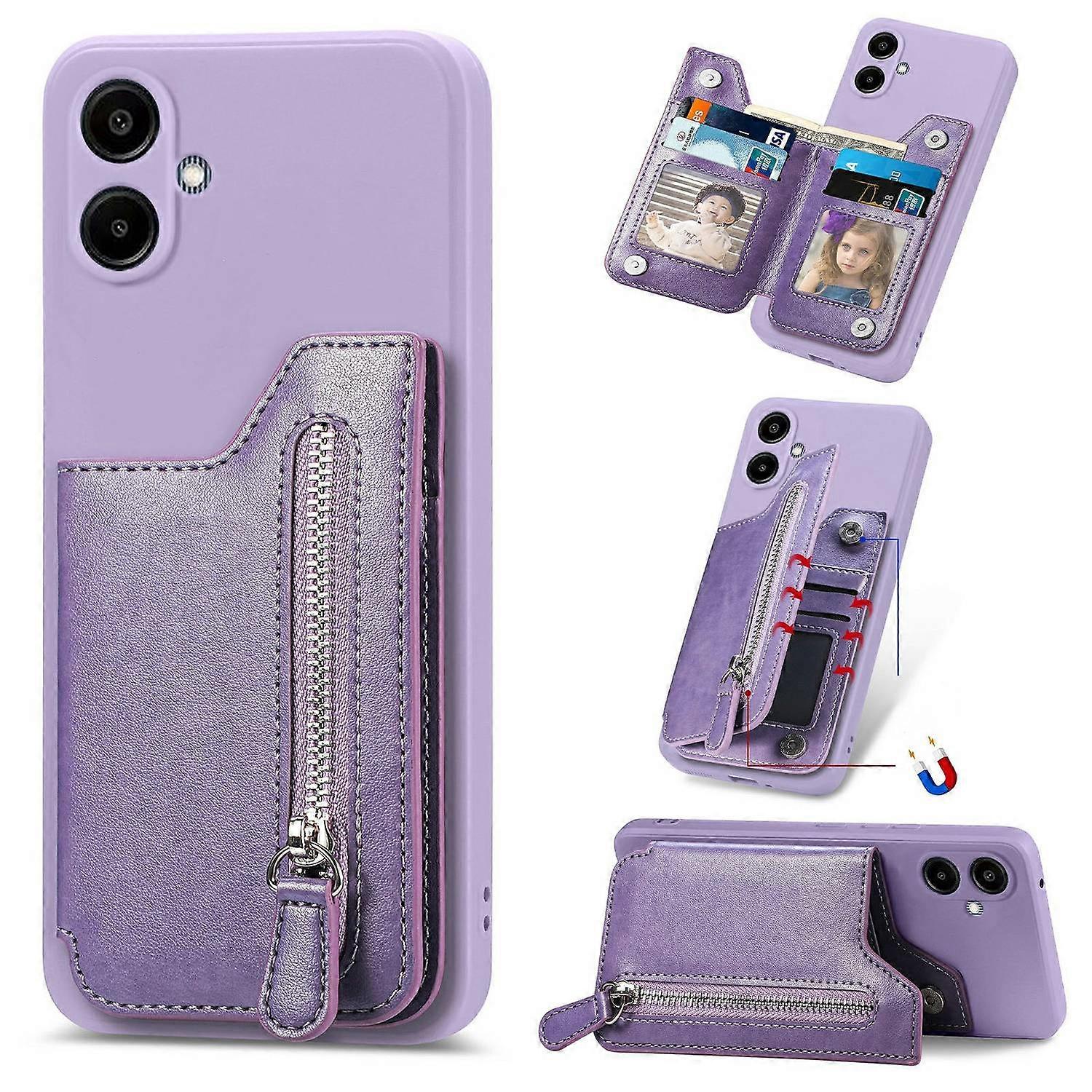 For Samsung Galaxy A06 Case PU Leather+TPU Phone Cover with Zipper Pocket Wallet - Purple
