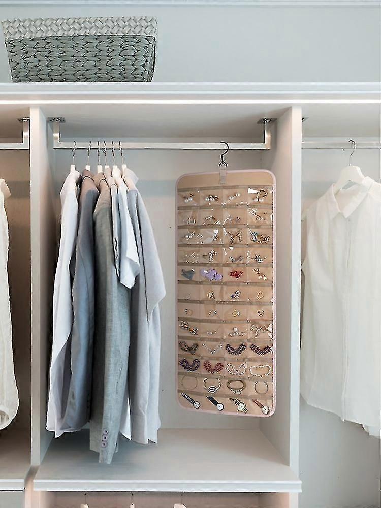Portable Hanging Jewelry Roll with Metal Hooks, Dual-Sided - Large Orchid