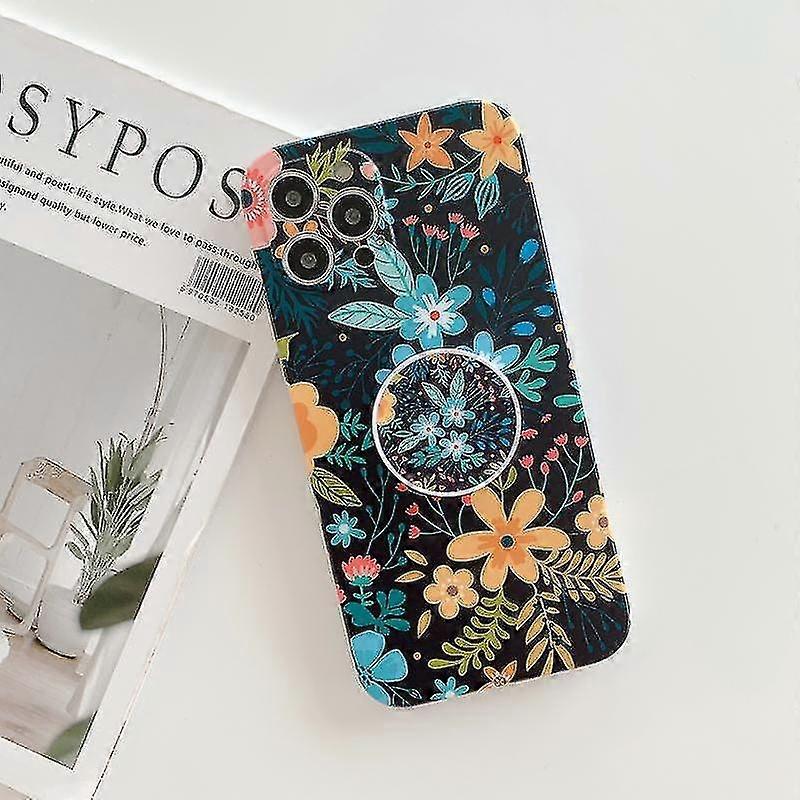 For Iphone 12 Pro Frosted Flowers Pattern Imd Tpu Case With Folding Holder(black)