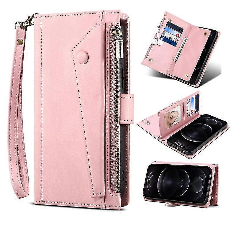 For Iphone 12 Retro Frosted Horizontal Flip Leather Case With Holder & Card Slot & Wallet & Zipper Pocket & Lanyard(rose Gold)