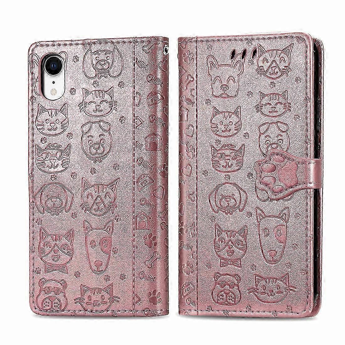 For iPhone XR Cute Cat and Dog Embossed Horizontal Flip PU Leather Case with Holder / Card Slot / Wallet / Lanyard