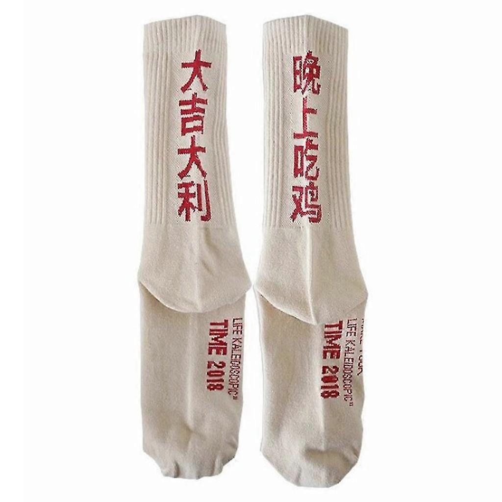 Unisex Novelty Crew Socks Funny Chinese Words Eat Chicken Hosiery Game Lovers