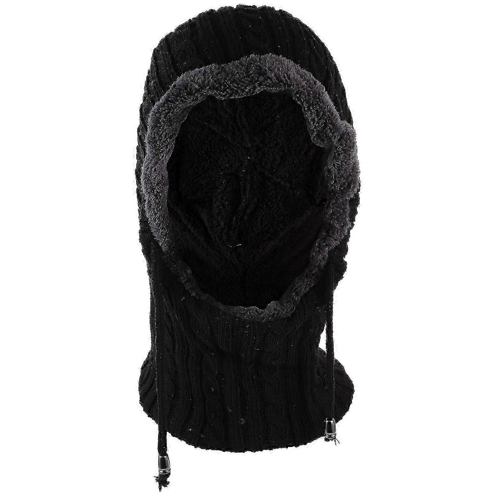 Unisex Winter Outdoor Practical Cycling Ski Hooded Scarf Hat Portable Knitted Thickened Caps For Women Men black UXD