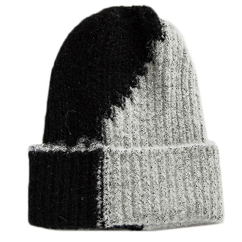 Unisex Winter Ribbed Knitted Stretchy Beanie Hat Color Block Cuffed Skull Cap