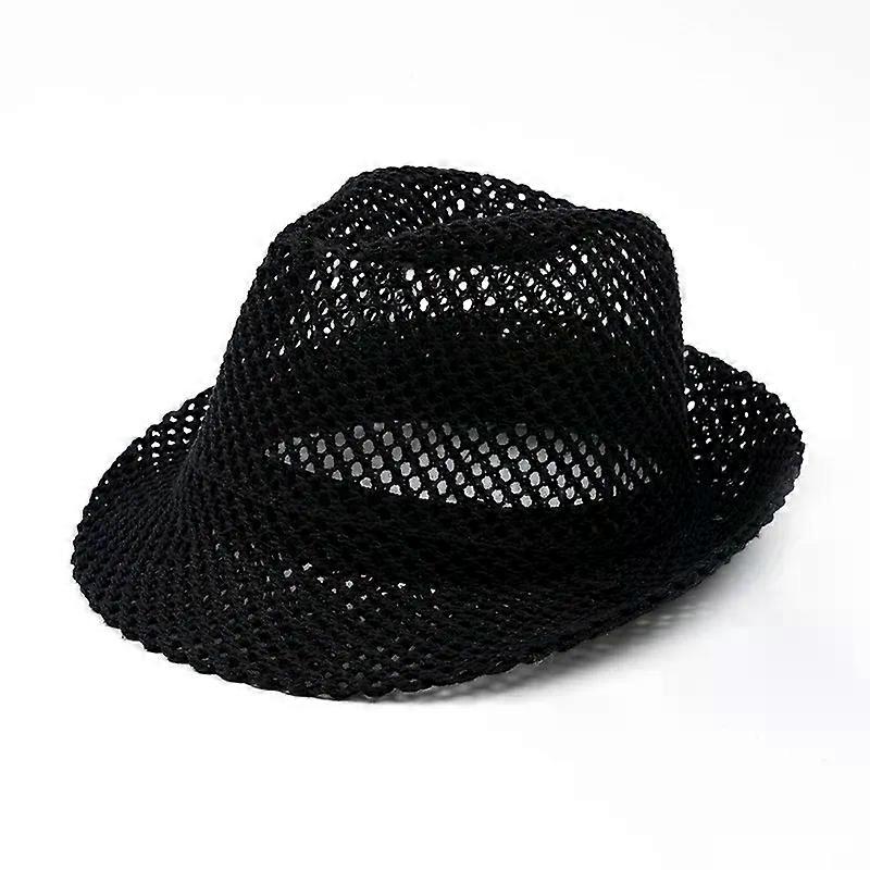 Unisex Summer Panama Hat Breathable Mesh Design Cotton-Polyester Material Compact Brim 58cm Head Circumference Jazz Cap