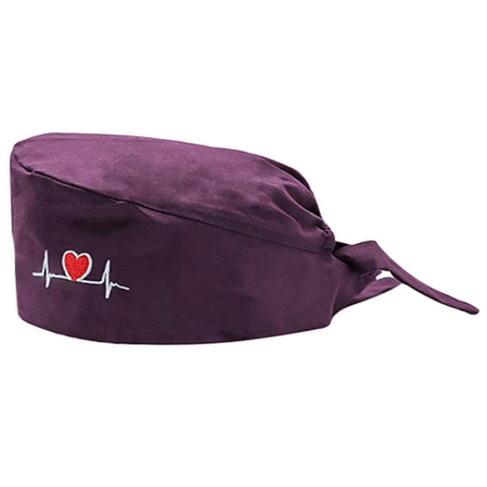 Unisex Heart Embroidery Scrub Cap With Button Sweatband Bouffant Hat