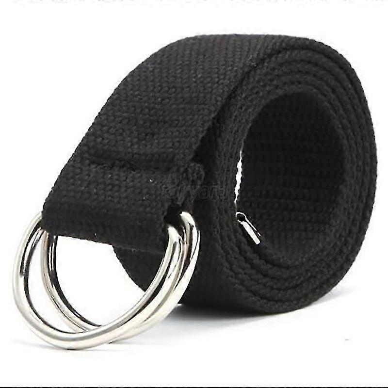 Unisex Canvas Belt Plain Webbing Double D Ring Metal Buckle Waistband