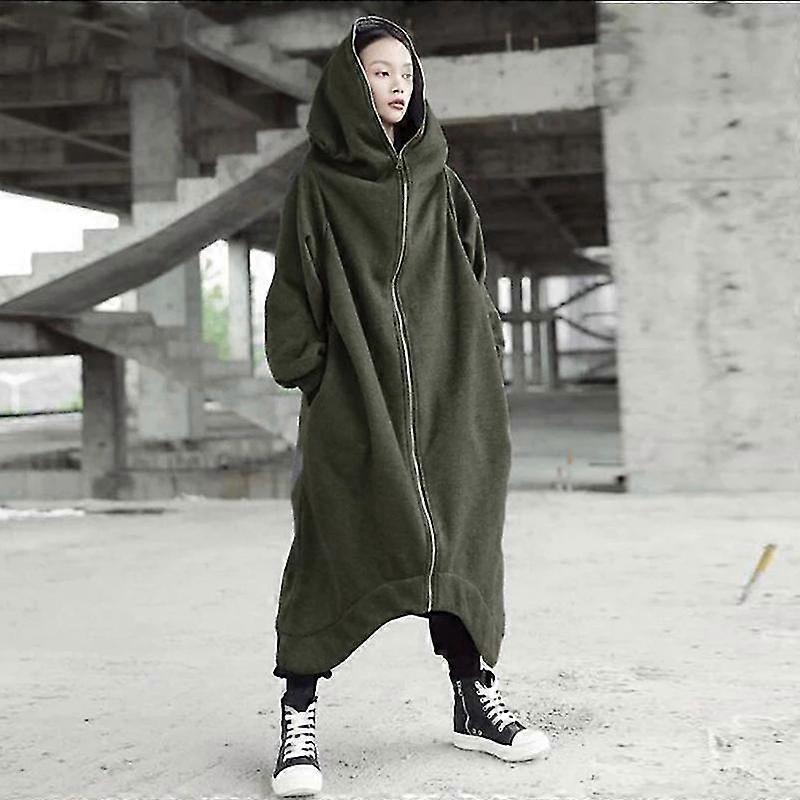 Unisex Long Hoodie Zipper Coat Long Sleeve Coat Zipper Closure Fleece Lined Long Hoodie